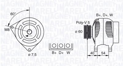 MAGNETI MARELLI 063341730010 - Генератор (12V, 70A) FORD ESCORT '95, ESCORT CLASSIC, ESCORT VII, FIESTA, FIESTA IV 1.8D 01.95-08.03