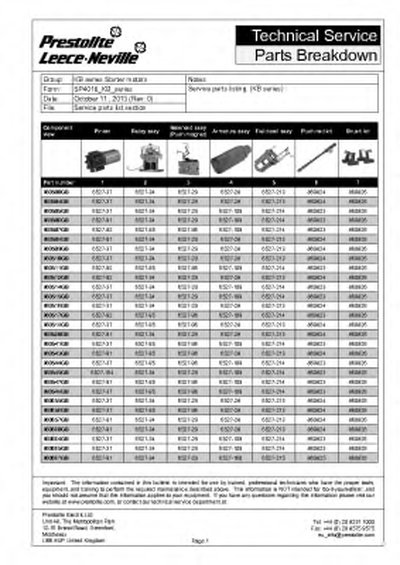 | Производитель | PRESTOLITE ELECTRIC |